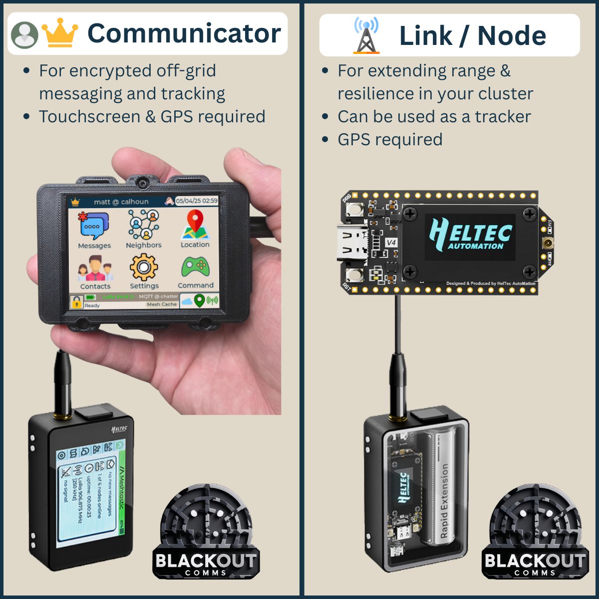 Note: The Blackout Comms secure off-grid messaging and location firmware is a licensed product. Certain features may require purchase of a license.
